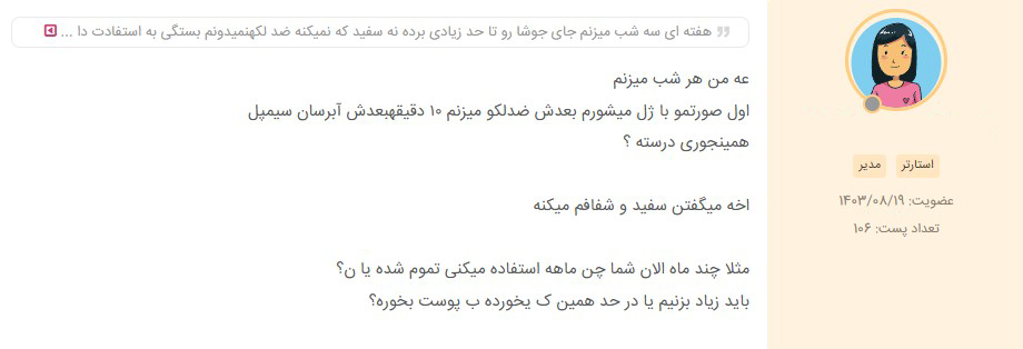 شب‌ ها بعد از شست‌ و شوی صورت، و صبح‌ها همراه با ضدآفتاب برای بهترین نتیجه