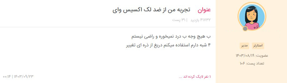 نظر کاربر (miss-yasiu) در نی نی سایت درباره استفاده از اکسیس وای