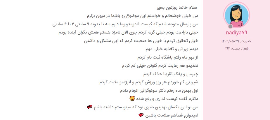نظر کاربر (nadiya79) در نی نی سایت درباره درمان کیست