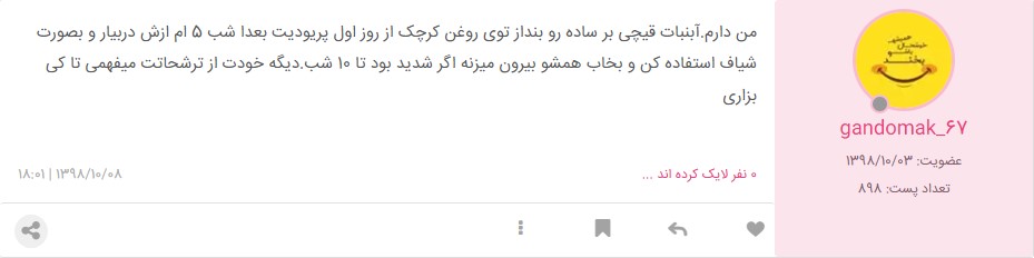 - برخی نیز نوشته اند که با مصرف پماد های مختلف نتیجه نگرفته اند و در نهایت با درمان سنتی مثل « عنبر نسا » یا مراجعه به پزشک مشکلشان حل شده است .